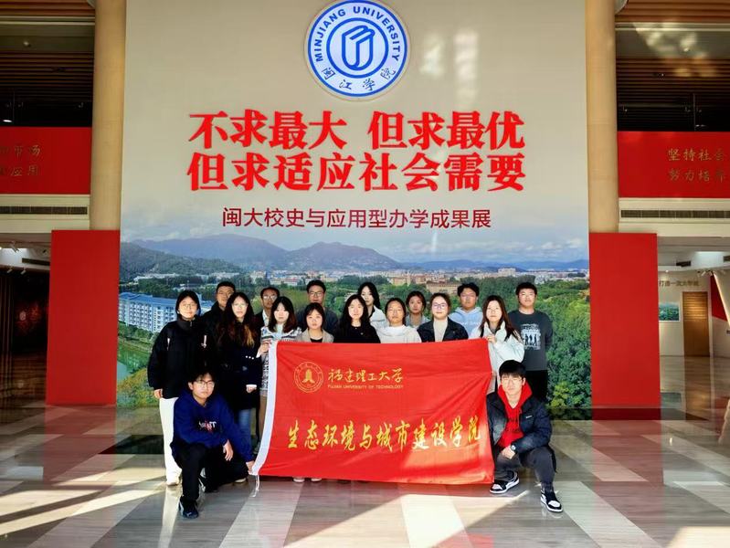 1月19日,福建理工大学生态环境与城市建设学院组织社会实践队,前往闽江学院开展寒假“返家乡”社会实践活动。本次实践以“追寻奋进足迹、汲取发展力量”为主题,通过参观闽大校史与应用型办学成果展,学习闽江学院的发展历程与办学经验,引导学生在实践中增强社会责任感和专业认同。