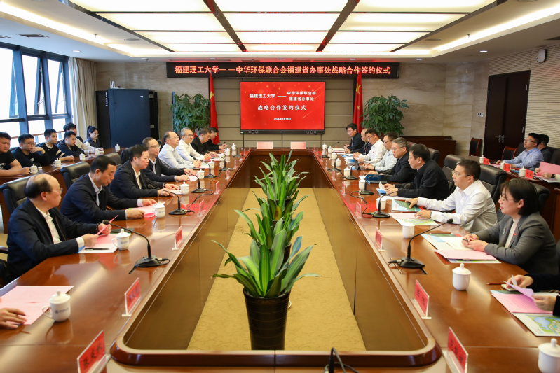 3月18日下午,福建理工大学与中华环保联合会福建省办事处战略合作签约仪式在旗山校区举行。中华环保联合会副主席、福建省办事处主任洪平,福建省办事处副主任刘松明、副主任黄光纯,校党委书记李绚、校长韦建刚、副校长何仕出席签约仪式。双方相关部门负责人、教师代表及会员企业单位参加活动。