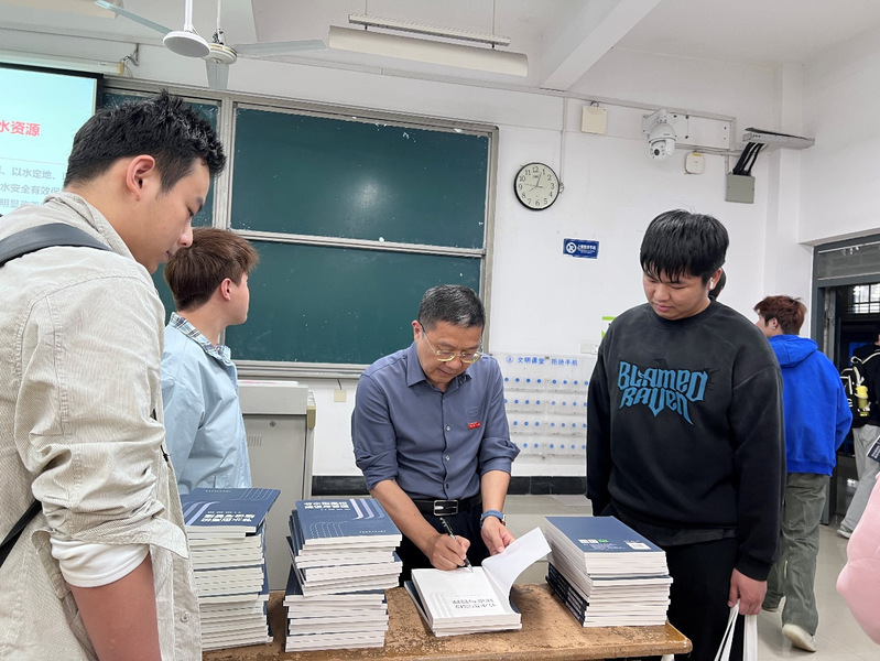 课程尾声,何仕副校长还向表现突出的学生代表赠送了由他主编出版并亲笔签名的《节水型高校建设与管理》一书,勉励同学们“精打细算用好水资源,从严从细管好水资源”,争做节水型社会的建设者和传播者。