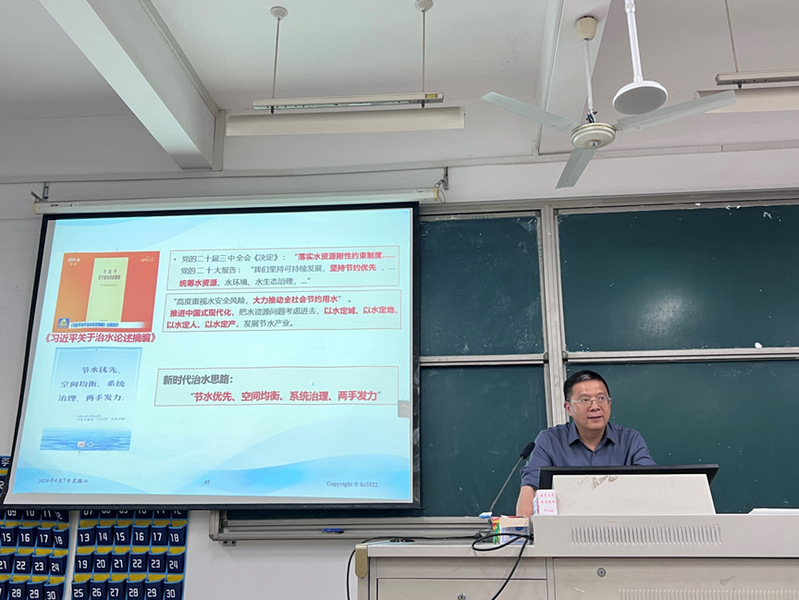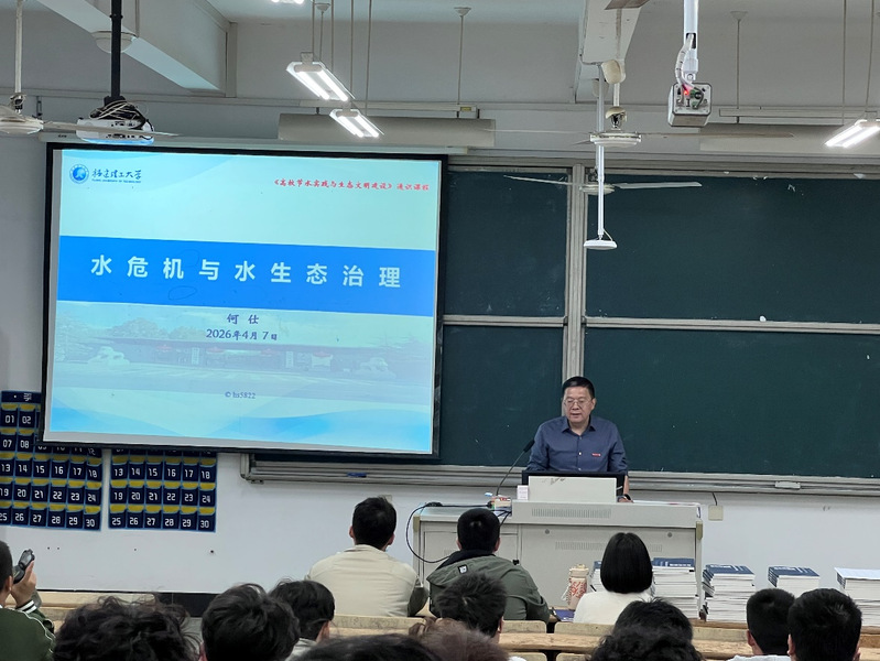 该课程首讲主题为《水危机与水生态治理》,由何仕副校长主讲。课程从联合国2026年“全球水资源破产”警告切入,结合非洲、欧洲、亚洲等多地区的水危机案例,深入剖析全球水资源短缺、污染及生态退化等问题。课堂还重点介绍了中国在鄱阳湖抗旱、珠江压咸补淡、塔里木河生态输水、南水北调工程、长江十年禁渔及黄河流域治理等方面的治水实践,生动展现了我国在水生态文明建设中的中国智慧与中国方案。